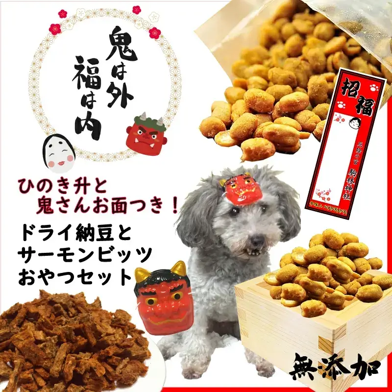 プチおやつセット(ドライ納豆・サーモン丸ごとビッツ・ひのき升・鬼のお面)